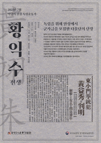 [충청뉴스큐] 안성시와 경기동부보훈지청이 공동으로 2021년 7월 이달의 안성 독립운동가에 황익수 선생을 선정했다.