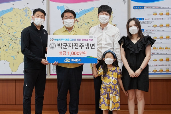 [충청뉴스큐] 아산시는 30일 박군자진주냉면 식당이 충남사회복지공동모금회를 통해 복지사각지대 취약계층을 위한 후원금 1000만원을 전달했다고 밝혔다.