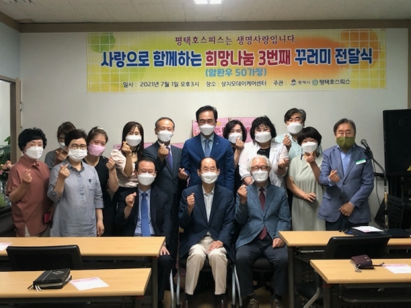 [충청뉴스큐] 평택호스피스는 지난 1일 평택시장이 참석한 가운데 암환우와 가족을 초청해 ‘사랑으로 함께하는 희망나눔 꾸러미’ 전달식을 개최했다.