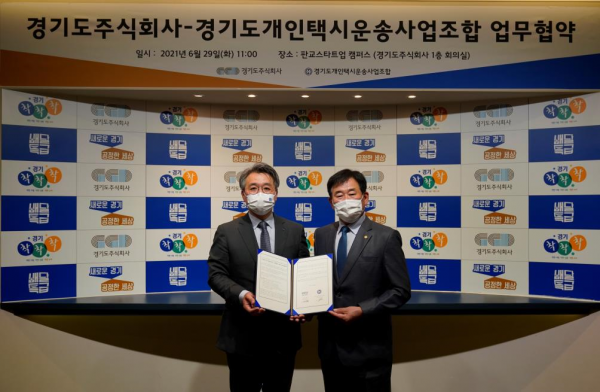 경기도주식회사와 경기도개인택시운송사업조합은 지난달 28일 성남시 판교 스타트업캠퍼스에서 이 같은 내용의 ‘공공플랫폼 확대를 위한 업무협약’을 체결했다고 5일 밝혔다.