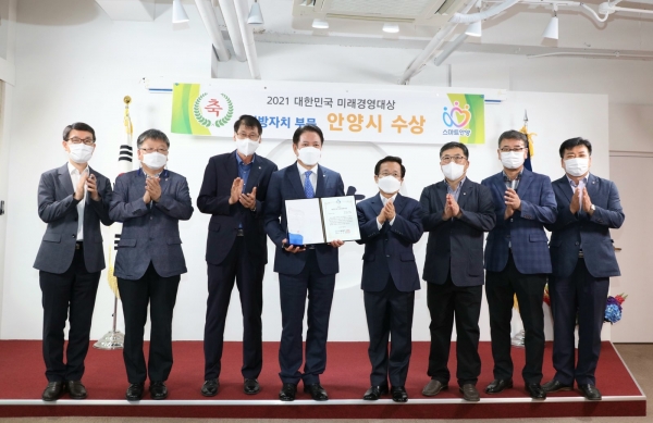 안양시는 2021 대한민국 미래경영대상 공모에서 민선7기 안양시정이 역점을 둔 청년정책을 포함한 각 분야의 우수성을 인정받아, 수상의 영광을 안았다고 밝혔다.