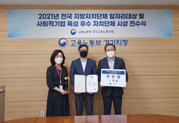 [충청뉴스큐] 수원시가 고용노동부가 주관한 ‘2021년 사회적기업 육성 우수자치단체’ 평가에서 우수상을 받았다.