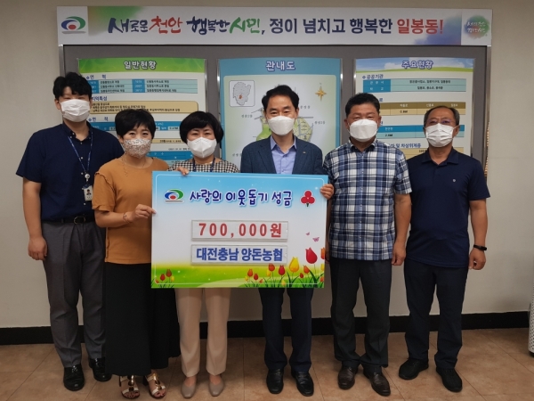 [충청뉴스큐] 천안시 일봉동은 지난 7일 대전충남양돈농협이 지역 내 취약계층을 위해 70만원을 기탁했다고 밝혔다.