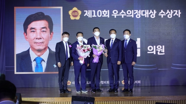 [충청뉴스큐] 경기도의회 건설교통위원회 엄교섭 의원은 8일 경기도의회 1층 대회의실 열린 지방의회 부활 30주년 기념행사에서 우수의정대상을 수상했다.