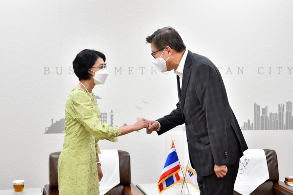 또한, “부산의 새로운 도시 비전인 ‘그린 스마트 도시’ 조성을 위해 스마트시티, ICT, 의료바이오 등 관련 산업을 육성하고 있다”며 대사의 많은 관심과 지원을 당부하는 한편 특히 2030 부산세계박람회 개최를 통해 부산이 동북아 허브도시로 자리매김 할 수 있도록 태국이 힘을 보태줄 것을 당부했다.