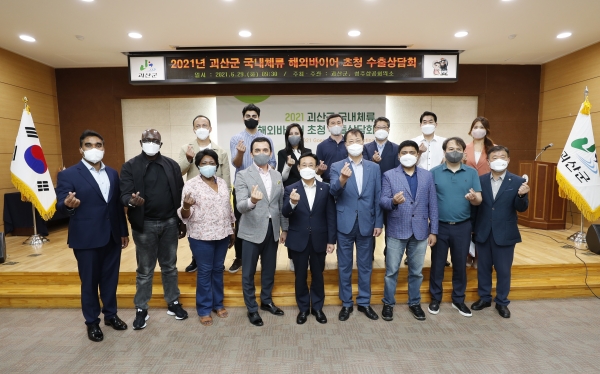 괴산군은 지난 6월 29일 군청 대회의실에서 열린 국내기업과 해외바이어가 만나 상품 수출 상담을 진행하는 국내체류 해외바이어 초청 농식품 수출상담회를 열었다.