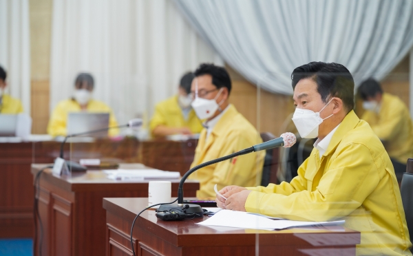 원희룡 지사는 12일 오전 9시 제주도청 4층 탐라홀에서 ‘코로나19 대응 및 여름철 자연재난 종합대책’을 주제로 주간정책 조정회의를 개최했다.