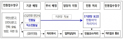 우선 자치단체 민원실 또는 직소민원실에 접수된 민원 중 긴급민원으로 판단되는 경우 기관장에게 신속하게 직접 보고하도록 개선했다.