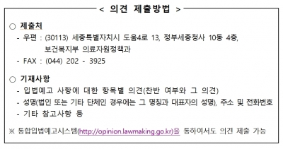 이번 개정안에 대하여 의견이 있는 단체 또는 개인은 2019년 1월 23일까지 보건복지부 의료자원정책과로 의견을 제출하면 된다.