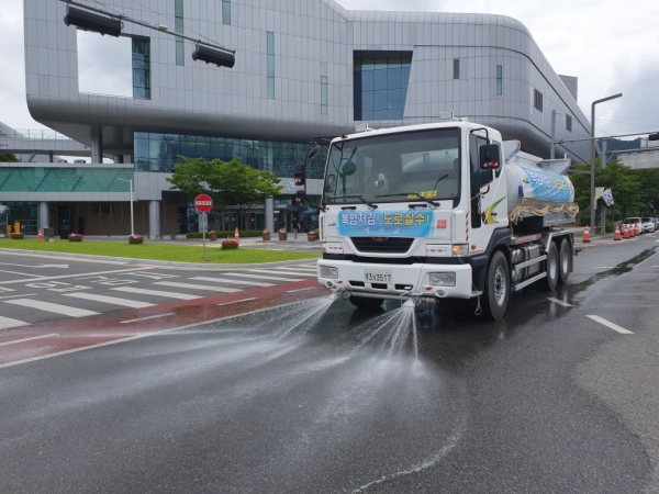 도로변 살수작업은 복사열을 감소시켜 열섬효과를 완화할 뿐만 아니라 미세먼지를 제거해 대기질 개선에도 큰 효과를 보이고 있으며 시각적으로 청량감을 제공한다.