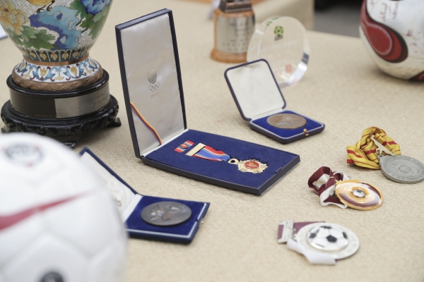 이날에는 대한축구협회 박경훈 전무이사가 90년 베이징 아시안게임 베스트 플레이어 트로피, 슈퍼리그 베스트11 트로피 등 자료 총 112점을 기증했다.