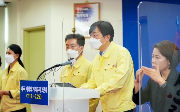 이에 제주도는 관광지 등 각 시설별 방역 강화와 함께 개편 거리 두기 3단계 격상을 세부적으로 검토 중이다.