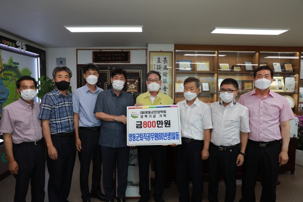 이종백, 백성학, 장승국, 임형택, 서완석, 박창정, 정관영, 이철호 씨의 퇴임공직자들은 영동의 희망찬 발전과 지역 학생들의 건강한 성장을 위해 각 100만원씩을 장학금으로 기탁하며 영동사랑을 대신했다.