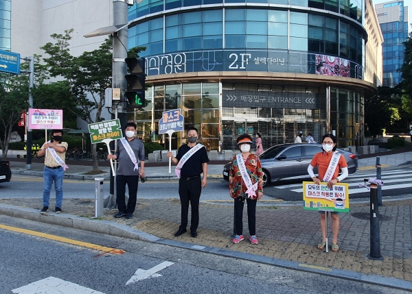 이날 캠페인은 최근 신규 확진자가 지속적으로 증가함에 따라 마스크 착용하기 2m 이상 거리두기 손씻기 생활화 5인 이상 사적모임 금지 등 코로나19 확산 방지를 위한 방역수칙을 주민들에게 널리 홍보했다.