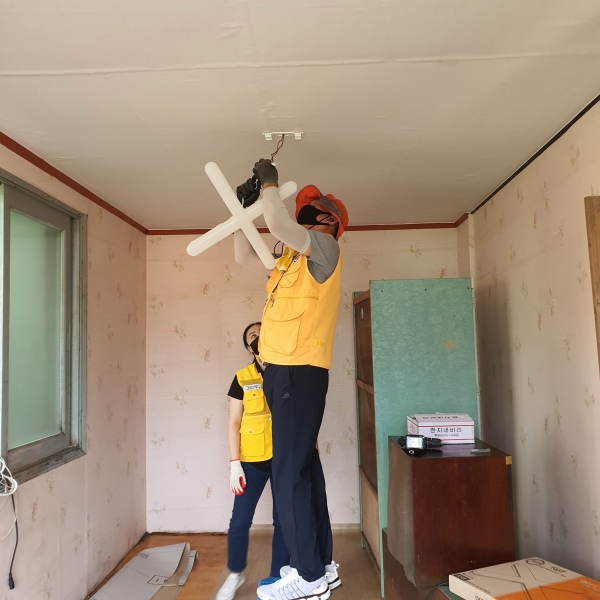 봉사자들은 집안 가득 채우고 있던 불필요한 물건을 덜어내어 정리하고 집안 구석구석 대청소를 했으며 때묻은 벽과 천정을 깨끗이 도배하고 낡은 장판을 새것으로 교체했으며 복잡한 전기선을 안전하게 정리하고 간단한 집수를 통해 깨끗하고 새로운 주거공간으로 만들어 줬다.