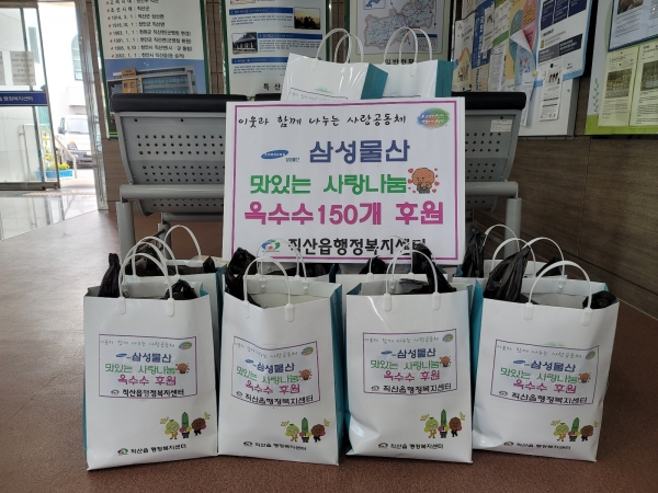 [충청뉴스큐] 천안시 직산읍은 삼성물산에서 지난 20일 행정복지센터를 방문해 지역 내 저소득층 15가구를 위해 옥수수 150개를 전달했다고 밝혔다.