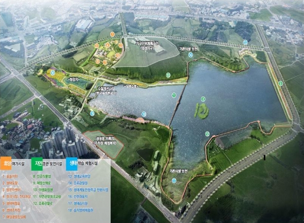 시는 업성저수지 주변 생태계를 보전하고 시민에게 친수 생태공간을 제공하기 위해 올해 12월 준공을 목표로 업성저수지 수변생태공원 조성사업을 추진하고 있다.