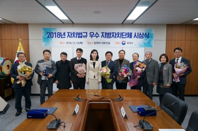 [충청뉴스큐] 법제처는 전국 226개 기초 지방자치단체를 대상으로 자치법규 자율정비 업무를 평가한 결과, 다음 11개 지자체를 자율정비 우수기관으로 선정하고 지난 13일 시상식을 가졌다.