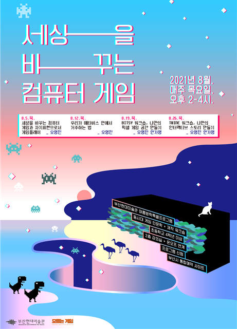 [충청뉴스큐] 부산시 현대미술관은 오는 8월 5일부터 초등학교 4학년 이상을 대상으로 하는 여름방학 특별프로그램 ‘세상을 바꾸는 컴퓨터 게임’을 개설한다고 밝혔다.