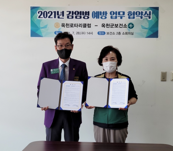 이번 MOU 체결로 옥천로타리클럽은 오는 9월 옥천군보건소에 냉난방 시설과 휴게시설이 완비된 선별진료소 2조와 의료장비 및 사무기기 등 4천만원 상당을 후원한다.