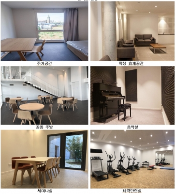 특히 음악?미술 작업실을 갖춰 예술인들의 창작 활동을 지원하고, 200명 규모의 공연장에서는 학술 및 문화예술 활동이 가능하며, 진동 및 지진 방진 설계를 도입하여 입사생들이 안전하게 생활할 수 있도록 설계됐다.