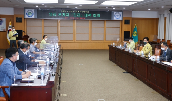 [충청뉴스큐] 대전시는 코로나 확산이 지속됨에 따라 사회적 거리두기 격상 및 병상부족 및 의료인 확보 등 대응방안 마련을 위해 2021월 7일 30. 오후 2시 의사회 및 병원장 등 의료 관계자들과 긴급 대책회의를 가졌다.