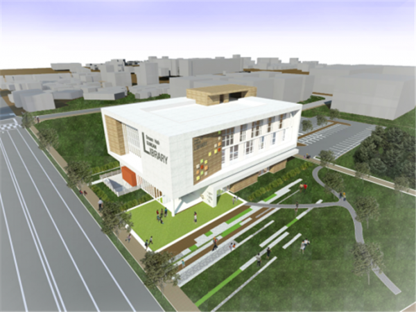 동부권도서관은 지상4층, 지하1층 규모로 디오션시티 내 인구밀집 지역에 세워지며 전세대가 함께하는 체류형 독서문화공간으로 즐겁고 흥미로운 공간 및 동적 공간의 이미지를 구현한 적극적 커뮤니티 공간이 될 것으로 기대된다.