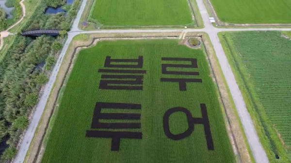 농업박물관에 따르면 지난 6월 농업테마공원 내 7천12㎡ 규모의 논에 모내기를 하면서 ‘블루 투어’ 문구를 새겨 넣었다.