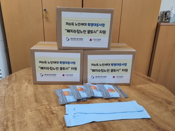 이번 지원은 연일 지속되는 폭염에도 폐지를 수집하는 저소득 노인들의 안전을 지키기 위해 추진됐으며 청주복지재단과 함께하는 저소득 노인세대 폭염대응사업의 일환이다.