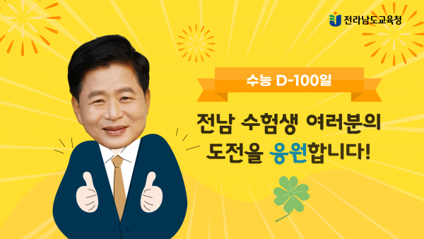 [충청뉴스큐] 장석웅 전라남도교육감이 9일 2022학년도 대입 수능시험 D-100일을 맞아 전남의 수험생들에게 ‘파이팅’을 기원하는 격려메시지를 발표했다.