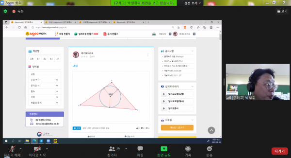 [충청뉴스큐] 전라남도교육청이 8월 9일 ~ 11일 중등 수학교사 20명을 대상으로 화상회의 플랫폼을 활용한 실시간 쌍방향 방식의 ‘2021. 수학교육용 소프트웨어 활용 연수’를 운영한다.