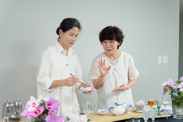 꽃차 체험은 송희자 사)꽃차문화진흥협회장과 일본에서 한국 약선요리 전문가로 활동하는 신카이 미야코 전남도 명예홍보대사가 함께 진행했다.