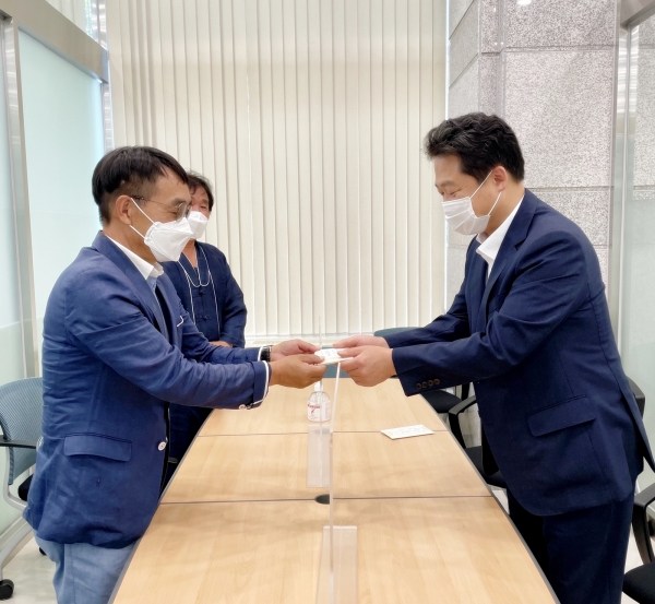 이날 기탁식은 최기은 선당마을 이장과 금감원 관계자 등 최소한의 인원만 참석한 가운데 코로나19로 인해 서로가 겪고 있는 어려움을 달래고 함께 이 시기를 슬기롭게 극복해 나가길 기원했다.