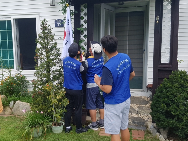 상촌면 하도대리 마을 등 주위 5개 마을을 방문해 집집마다 태극기 거치대를 직접 설치하고 전 주민에 태극기를 전달했다.