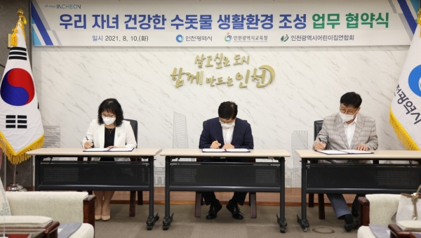 [충청뉴스큐] 인천광역시교육청은 지난 8월 10일 인천광역시청 및 인천어린이집연합회와 ‘우리 자녀 건강한 수돗물 생활환경 조성’사업 업무협약을 체결했다고 밝혔다.