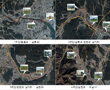 큐아르코드 팻말은 명촌교~십리대숲~선바위~석남사를 크게 4구간으로 나눠 한 구간당 3개씩, 명촌교 하부 백리대숲 시작점에서 울주군 상북면 농공교 부근까지 모두 12개가 있다.