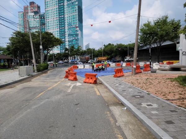 [충청뉴스큐] 8월 11일(수) 22:40경 안심로 안심역 동편 안심차량기지 진입로 부분에서 약 가로 10m, 세로 10m, 깊이 7m의 싱크홀이 발생했다.