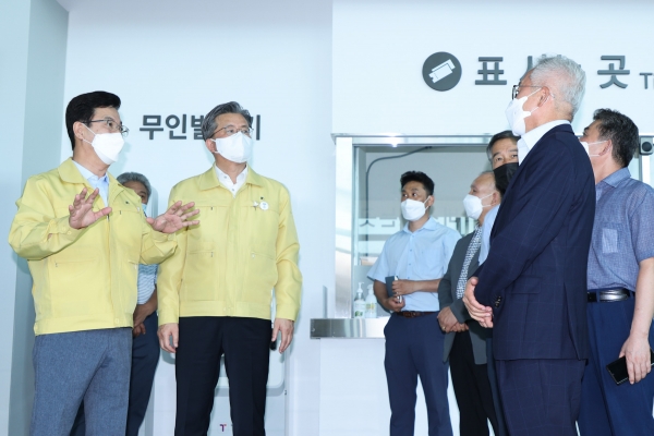 [충청뉴스큐] 허태정 대전시장은 12일 오후 이날 이전운영을 시작한 유성시외버스정류소를 찾아 운영상황을 점검하고 이용객들과 불편사항 등에 대해 대화를 나누었다.