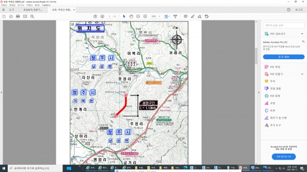 시는 이런 문제점을 해소하기 위해 총 사업비 69억 3000만원을 투입해 총 연장 1.13km, 폭 6m규모의 농어촌도로를 2022년 6월 준공 목표로 확장공사를 추진하고 있다.