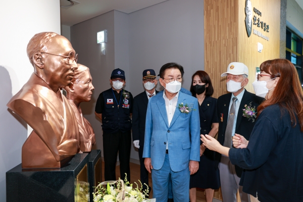 코로나 방역수칙을 철저히 준수한 가운데 열린 이날 행사는 내빈소개를 시작으로 경과보고 기념사와 축사, 테이프 커팅에 이어 시설관람 순으로 진행됐으며 기념관 개관을 맞아 소중한 유품과 대한독립의 역사를 담은 사료를 기증한 후손에 대한 공로패 및 기념관의 의미를 더하는 무궁화 100주를 기증한 전영한 님에 대한 감사패를 수여하는 시간도 가졌다.