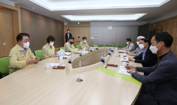[충청뉴스큐] 청주시 보건소는 17일 오전에 시청 직지실에서 코로나19 예방접종센터 의사 인력 지원을 위한 간담회를 개최했다.