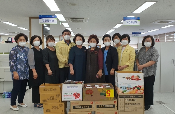 김혜숙 협의회장, 한복녀 부협의회장, 김경순 총무 등 군 여성단체협의회 임원진은 전국적인 코로나19 대유행으로 어려움이 많은 보건소 의료진과 직원들을 위해 응원의 메시지를 전달하고 빵, 과일 아이스크림을 담은 간식세트 130개를 전달했다.