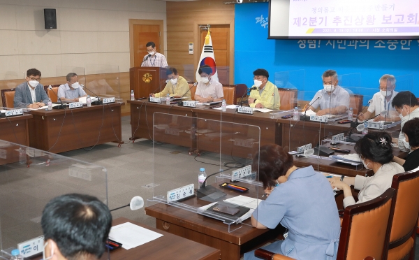 [충청뉴스큐] 광주광역시는 18일 오후 시청 소회의실에서 김종효 행정부시장 주재로 2021년도 ‘정의롭고 따뜻한 광주만들기’ 조성을 위한 4대 분야 23개 과제에 대한 2분기 추진상황 보고회를 가졌다.