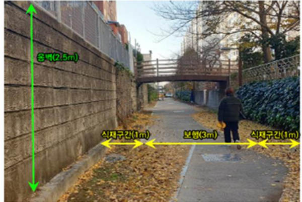 통학로에 조성되는 만큼, 시는 다양한 조경기법을 도입해 화단을 조성하고 통행로 바닥에는 바닥 그림을 그려 아이들의 흥미를 유발했다.