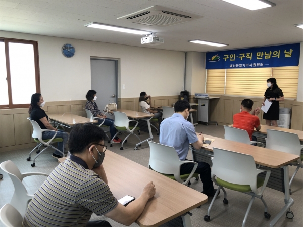 [충청뉴스큐] 예산군일자리지원센터는 코로나19 상황에서도 지난 17일 예산군일자리센터에서 지역 내 기업의 고용난 해결 및 지역민의 취업난 해소를 위한 구인·구직 만남의 날 행사를 개최했다.