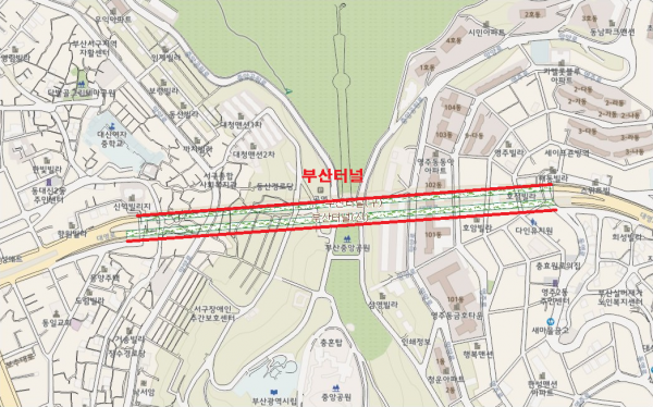 부산터널은 8월 25일에서 9월 2일까지 영주동 방면 하행선 1개 차로가 차단되고 대티터널은 8월 23일부터 27일까지 공사 진행 상황에 따라 상·하행선 중 1개 차로가 차단된다.