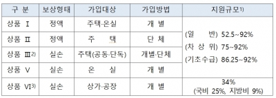 풍수해보험 가입자의 소득 수준에 따라 보험료 중 34~92%를 국가와 지자체에서 지원하여 개인부담 보험료가 저렴하다.