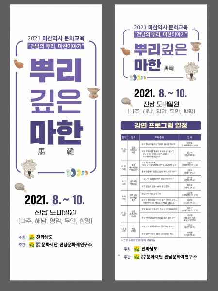 [충청뉴스큐] 전라남도는 6월 ‘역사문화권 정비 등에 관한 특별법’ 시행에 따라 전남도문화재단 문화재연구소 주관으로 20일부터 10월까지 매주 금요일 도내 일원을 순회하며 지역 맞춤형 마한 역사문화교육 ‘뿌리깊은 마한’을 진행한다고 밝혔다.