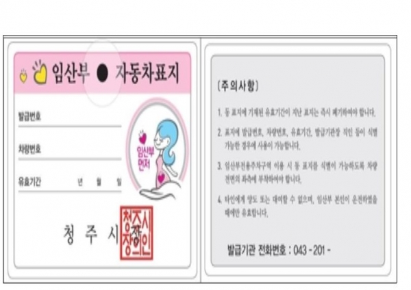 [충청뉴스큐] 청주시 보건소는 임산부를 대상으로 출산 후 6개월까지 유효한 자동차표지를 발급하고 있다.