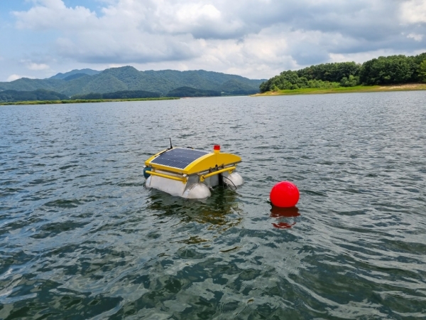 수질측정기를 부이에 탑재해 대청호에 직접 띄우는 방식으로 취수탑 전면수역의 표층수 및 심층수 수질상태를 원하는 위치에서 실시간 수질 측정 및 모니터링이 가능하다.